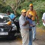 Jaliya 4S7JL set out the rules and everything started off at 9.30 a.m.. The fox was heard on 144.220 with a continuous CW ID as 4S7JL. The teams took their bearings and 4x4s were revving up to get off in the direction of Kaduwela. Soon it was obvious that the Fox was no easy catch and it took almost 2 hours for Nadika’s team of 4S5NCH assisted by Daya 4S7DB and 4S6ATL Tilak to track it down to the temple off Kaduwela. Sadly the other teams of 4S7VK, 4S7AB, 4S7VJ, 4S7KG were going round in circles!!! The task wasn’t easy with signals getting reflected off many buildings. Yet this gave a great deal of excitement.